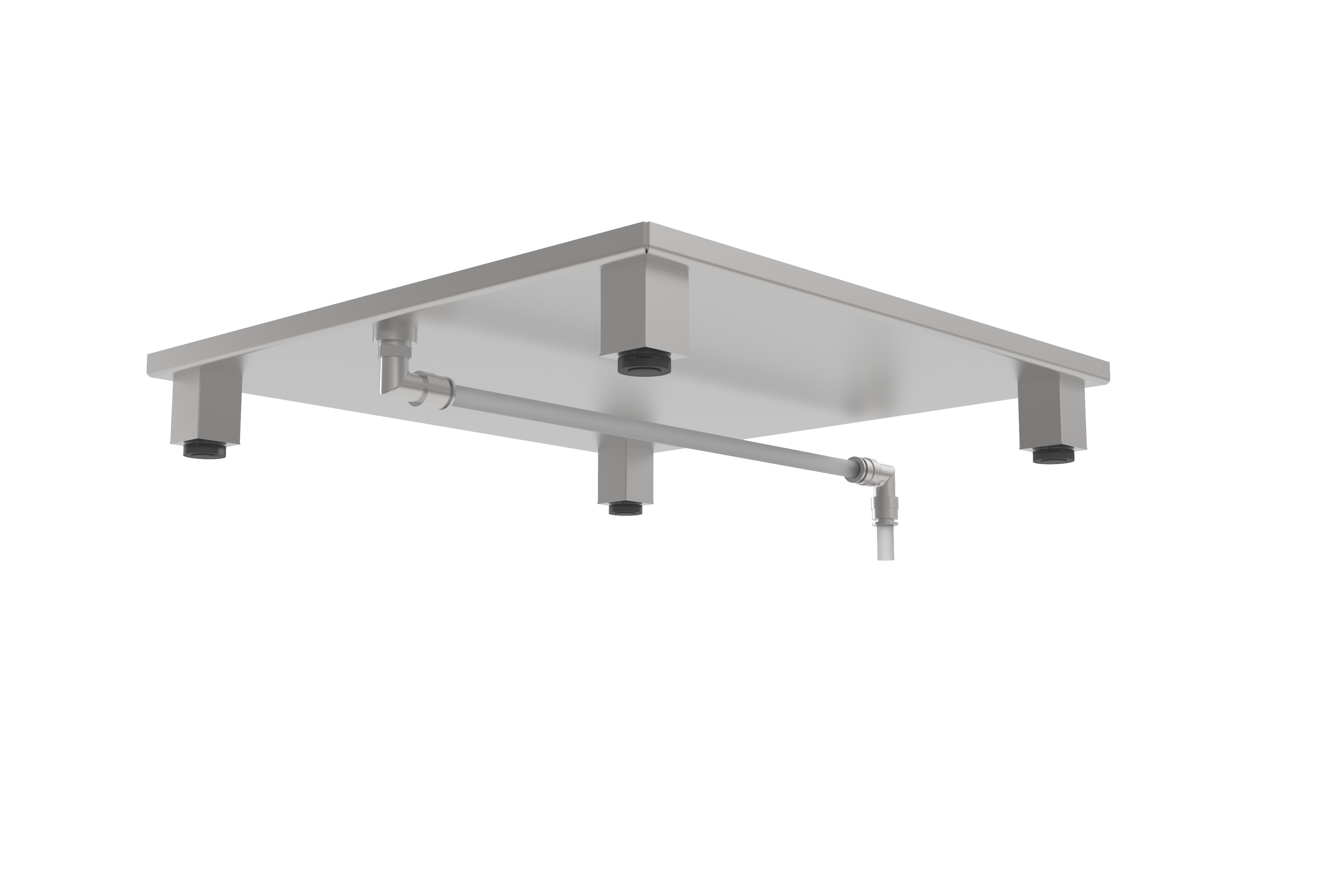 Столешница выполнена в виде приёмного лотка, обеспечивающего сбор пролитой жидкости с дальнейшим сливом через дренажное отверстие. За счёт такой конструкции реализована возможность сбора пролитой воды или иной жидкости с дальнейшим сливом через сливной штуцер в накопительную ёмкость либо канализацию, что значительно упрощает работу с водой и водными растворами.